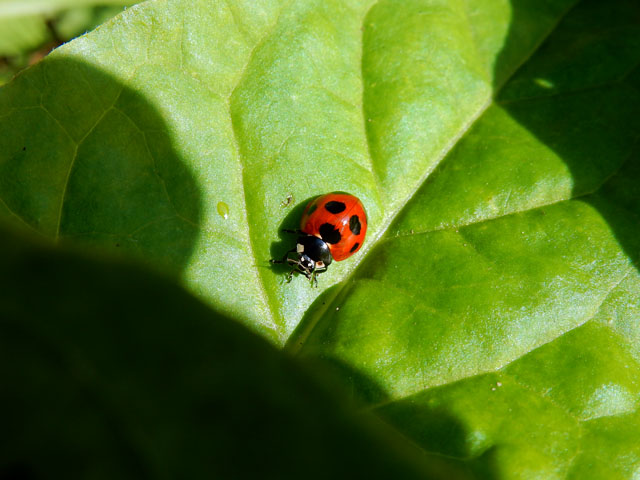 少し前のことになりますが、11/13(金)の小春日和の陽気に包まれた日に訪れた、雑木林のそばにある池畔の散策・その2をお届けさせていただきます。・°・。湧水池には木道が設けられていて、色とりどりの錦鯉たちが、陽光を受けて体表をキラキラと輝かせながら泳いでおりました。・°・。池沿いを流れる小川の脇にはオシロイバナの葉がまだ茂っていて、脚を縮こませていたナナホシテントウさんも間もなく目覚めて歩き出しました。・°・。そして手前の葉陰からはコバネイナゴさんがひょっこりと顔を出しました・・・