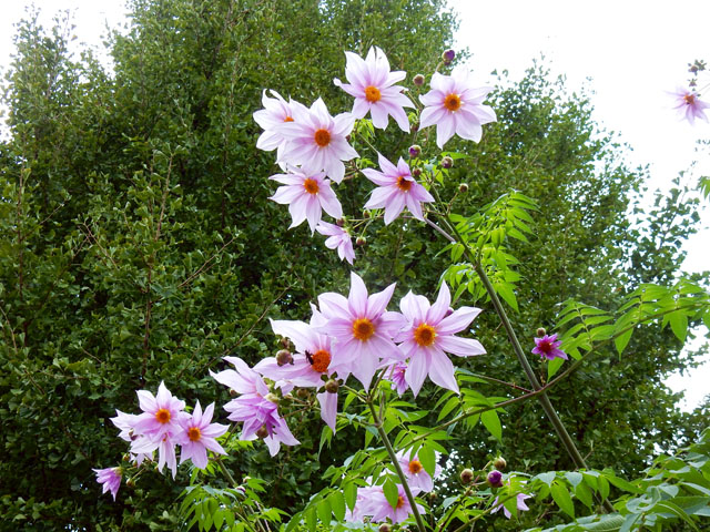 林を抜け出て線路わきの明るい土手に出ると、陽だまりでムラサキシジミさんが羽を拡げて、その美しいメタリックな青紫色を輝かせておりました。・°・。(*0*) 雑木林の周辺では、大きく育ってきたジョロウグモさんの姿も目立ちました。・°・。線路を挟んでしばらく歩いたところにある別の大きな公園に移動しました。こちらにも池があって、広大な敷地には様々な樹種が植えられていて、四季を通して自然観察を楽しませていただいております。・°・。今の時期はちょうど皇帝ダリアが、その迫力ある身の丈の上に大輪の花を咲かせておりましたが、3メートルは優に超えそうな高みから、花々に見下ろされているような感覚を覚えました(・・;) ・・・その4へつづく。・°・。アトリエ☆イボヤギ 木村大介