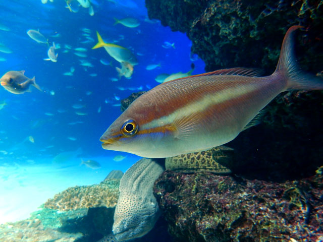 ちょっととぼけたような表情にも見える?キツネウオさんが見やすい位置におりましたが、近くで観ると結構美しい色合いをされているなぁと感じました。・°・。アカヒメジさんもそばで見ると、赤い瞳と薄桃色の鱗模様がとても綺麗でした。・°・。大きめのトガリエビスさんが中層を悠然と周回していたので、手前に来た時に写真に収めようと何度か試みたのですが。。ひゅっとターンするタイミングがなかなか掴め切れなくて、その凛々しい横顔をうまく撮ることが出来ませんでした・・・(*´-`) その2へつづく・・・アトリエ☆イボヤギ 木村大介
