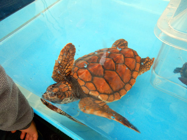 アカウミガメの子亀も好奇心旺盛に水槽の外を眺めながら泳いでおりました(^^) コシオリエビなどの深海性の甲殻類たちは、まるで今の紅葉シーズンにぴったりの色合いでございました♪・・・その2へつづく。・°・。アトリエ☆イボヤギ 木村大介