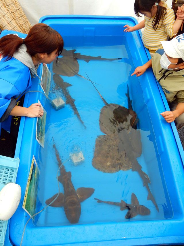 先日(11/20)に訪れた晩秋の日比谷公園の続きです。・°・。園内で開催されていた第4回Fish-1グランプリの会場には、タッチプールが設けられておりましたが、イシダイやイシガキダイ、タカノハダイやカワハギさんなどにも触れられるとあって、係のお姉さんのアドバイスに従って、それぞれの触感をそっと確かめておりました。・°・。子供たちにはサメやエイも人気のようで、熱心に質問する子の姿もありました(^^) 珍しく深海生物に触れられるコーナーもあって、わたくしも大好きなオオグソクムシさんに初めて触れてみました・・・思っていたよりも硬めの質感でツルツルりしているんだなぁ。。と感じました(*゜0゜)