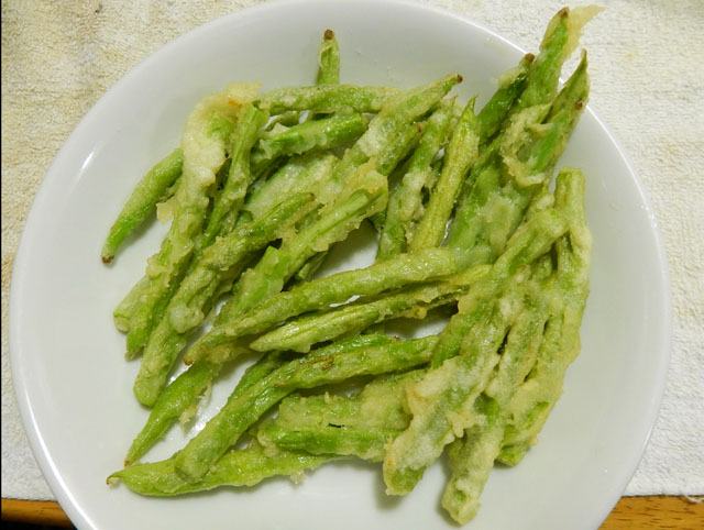 先日に引き続きまして、しばらく溜まっておりました身近な夏の話題をおとどけさせていただきます・・・今夏の我が家のグリーンカーテンは、種蒔きなどの準備が大幅に遅れた上に、エビガラスズメさんの幼虫が発生してしまったため、生長が著しく阻害されてしまいました。。(-_-;)  幼虫がまだかわいらしいサイズだった頃に、スズメガの仲間が好きだったゆえ、大目に見ようと見逃してしまったことを悔やみました(>_<); しかし巨大になった幼虫を放置し続けていると、全ての葉を食い尽くされかねないので、遅まきながらプラケースに収容して隔離飼育を始めた次第です。餌は裏庭に自然発生した(毎年のこぼれ種から芽生えた)朝顔のツルを適宜与えておりましたが、8/24に撮影した左端写真のような立派なサイズに成りました・・・黒く尖った尾角は、幼いころの柔軟なものとは異なり、堅くしっかりした実用的な武器に変化しておりました(*゜0゜) わたくしの夏の楽しみのひとつに、夏野菜の天ぷらがございます。(掲載の順からして、前述の幼虫を揚げていると勘違いされそうですが・・・(・・;) ?! )中でもサヤインゲンの天ぷらが大好物です♪ 揚げたてに塩をふって熱々をいただくのが最高です(o^-^o) アトリエ☆イボヤギ 木村大介