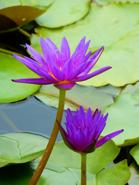 左端の青紫色の美しい睡蓮は、タイで新しく作られたパラミーという品種で、中央の薄桃色の睡蓮はコロラドというアメリカの品種・・・といった情報なども「見頃を迎えた花」として、専用サイトで詳しく紹介されておりました。・°・。池の中には残念ながら生き物の姿は見受けられませんでしたが、水辺の植物が元気よく繁茂しておりました。・°・。*
