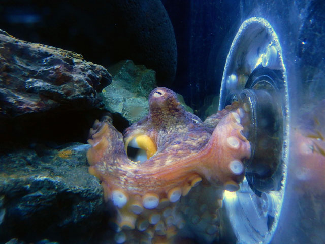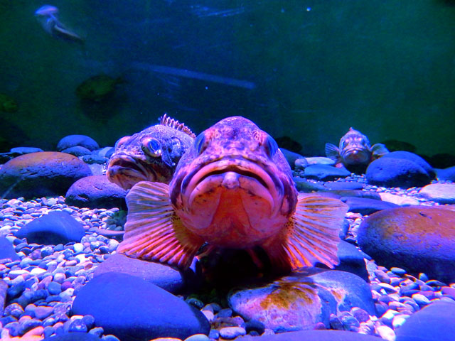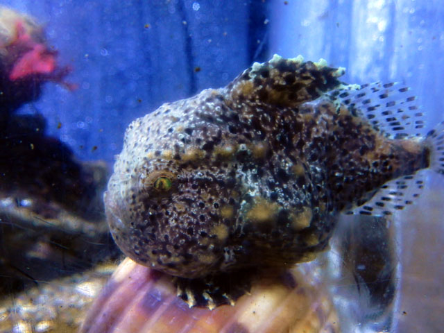 冷たい水温のために結露した水槽には、フウセンウオさんたちがおりました。巻き貝の中に産卵した卵をオスが守るそうですが、貝の上に居たのは育メンのオスたちだったのでしょうか・・・('-'*)? 光の加減によって、瞳の色がサファイアブルーに輝いて見えるのがとても美しかったです(☆_☆) タコ水槽ではマダコさんが腕を水槽の穴に差し入れて、何かを探っておりました。・°・。その6へつづく・・・アトリエ☆イボヤギ 木村大介