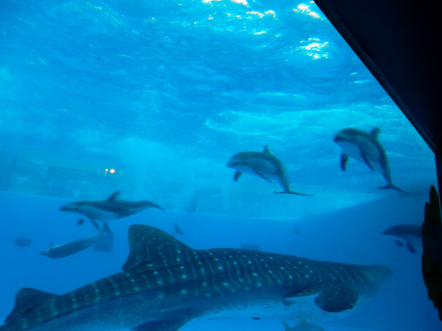 八景島シーパラダイス訪問記・その8をお届けいたします・・・ジンベイホールではジンベイザメの他、アシカやイルカたちのショーを行うアクアスタジアムを、アクリルガラス越しに観ることが出来て、水中ではどのような動きをしているのか?水上から眺めるのとはまた違った魅力がございました(*゜0゜) ショーの間もジンベイザメさんはほぼ無関心で?悠然と泳いでいたのがなんだかおかしかったです。。(^^)