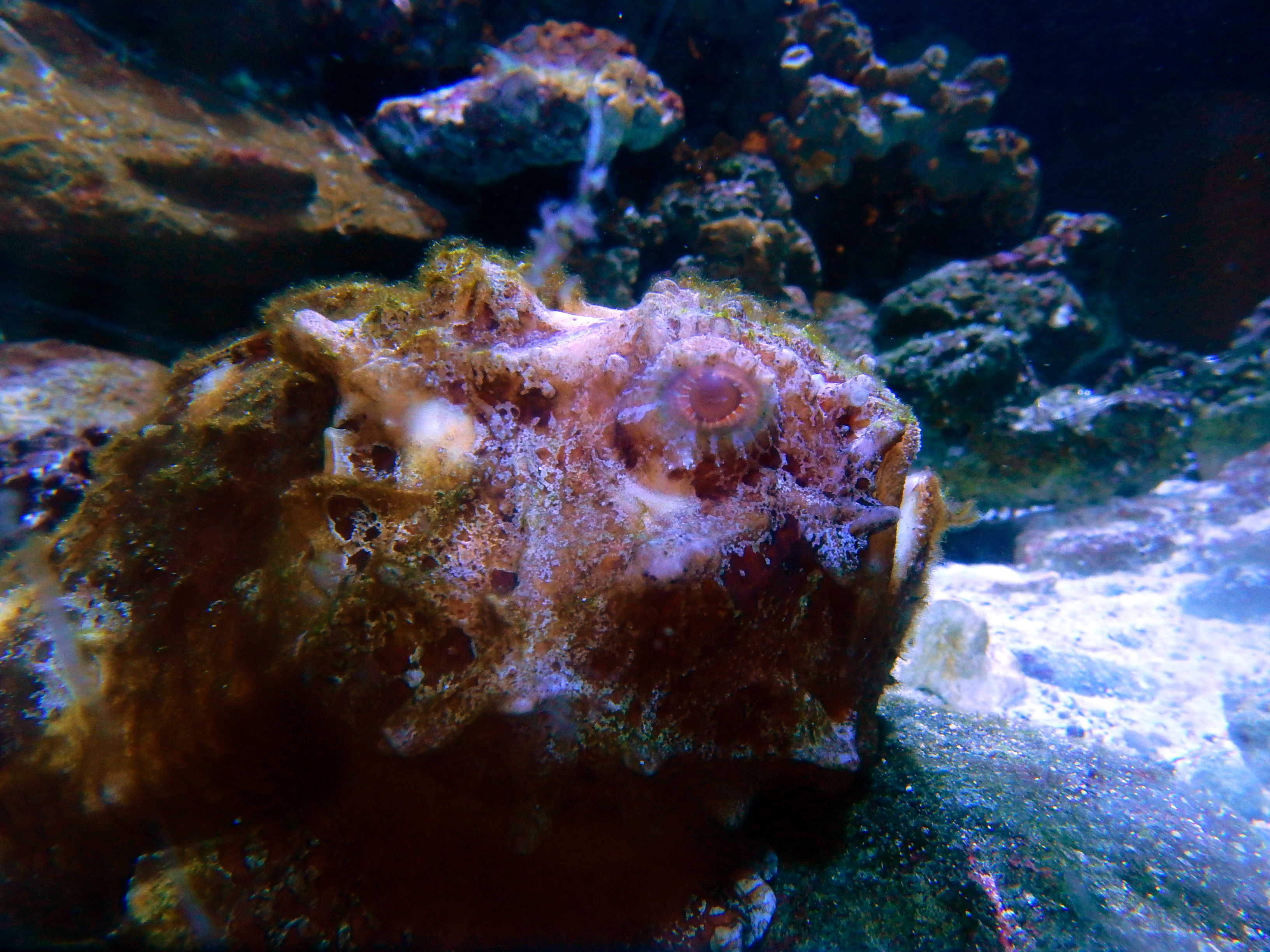 どれも見事な擬態ですが、その色合いも大変に美しくてステキでした。・°・。(*'-'*) サンゴ岩の間にはサツマカサゴさんも隠れていたのですが、友人に言われるまで気が付かない程、巧みな一体化でございました(*゜0゜)