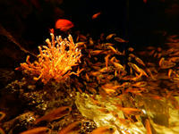 「サンゴの森にすむ生きものたち」水槽では、わたくしのアトリエの屋号ともなっておりますイボヤギやイソバナの間を、キンメモドキさんの群れが泳いでおりました。・°・。「擬態する生きもの」水槽ではダルマオコゼさんたちが様々な色合いや表情をしており、その姿にとても魅せられました。・°・。(*_*)