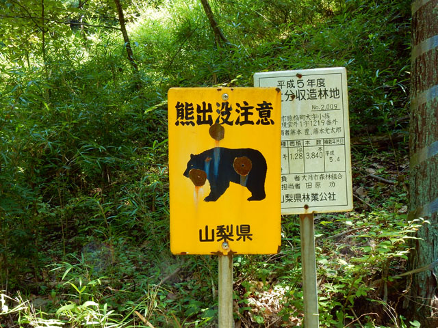 山梨県の倉岳山登頂記・その2をお届けいたします・・・貯水池の手前の土手沿いにウメノキゴケの仲間と思われる地衣類が、まるでリーフレタスのようにもっさりと繁茂している樹々がございました。・°・。山道に入ってすぐのところで「熊出没注意」の標識を目にしました。。わたくしが事前に読んでいた山のガイドには、クマのことはひと言も・・・(*゜0゜) とにかく注意しながら歩こうと気に留めました。・°・。(-_-;)  山のホームページなどを見ると夏場は登山者も少ない山のようで、静かな山道を歩いていると確かにクマでも出て来そうな雰囲気を感じました。。(^_^;)