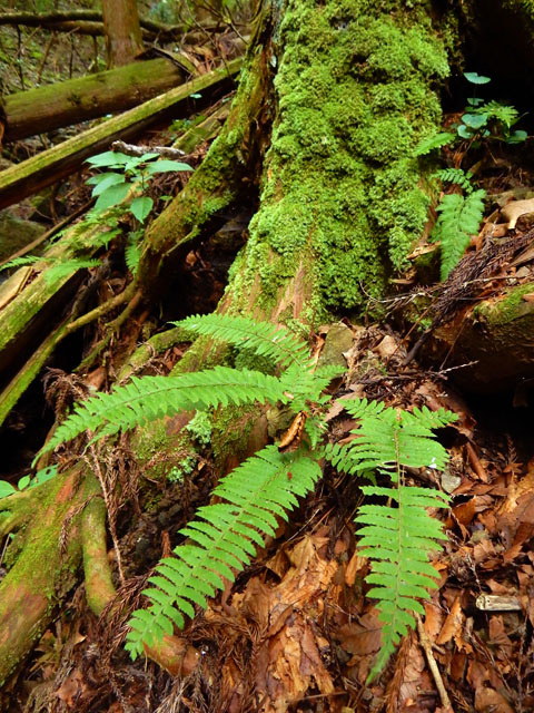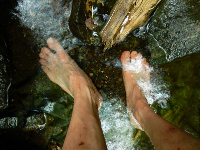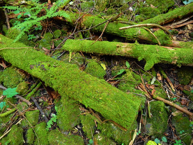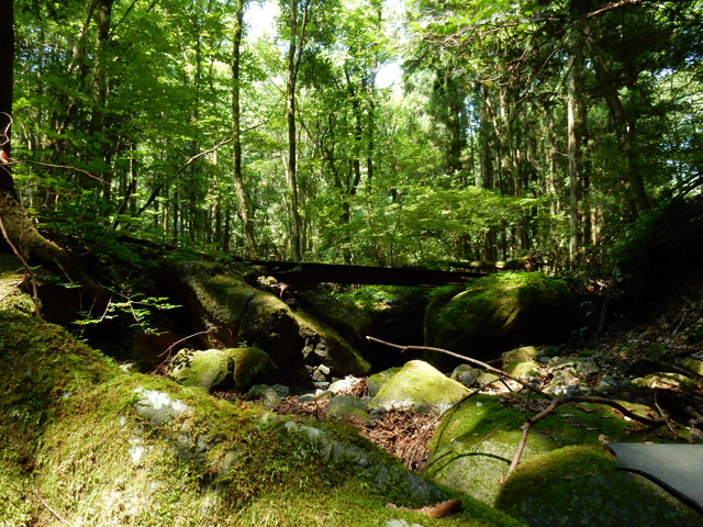 竜野峠からしばらく下ると、月尾根沢に沿って道が続きました。・°・。ひっそりとした静かな谷間にはシダや苔が多く生えておりました。・°・。冷たい清流にしばらく足を浸して、足首の疲れを癒やしましたが・・・5分と浸けていられない程の冷たさでした。。(≧▽≦) 谷のそこかしこで一面を緑の苔に覆われた岩や倒木をたくさん見掛けました。・°・。*