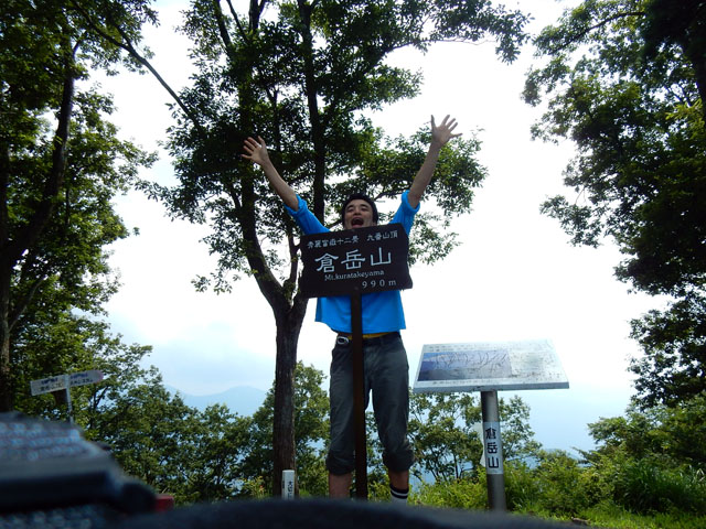 緑の多い山道ではタマゴタケの鮮やかさがより際立って見えて、なんだか童話の絵本の中を歩いているような楽しい錯覚に陥りました。・°・。そんな目を楽しませてくれる環境の中を歩いて行くと、急な坂道を登り切った先にとうとう山頂が現れました・・・ヽ(´▽`)/ 今回はあいにく雲がかかっていたので富士山の眺望は叶いませんでしたが、ここまで登って来た充足感を満喫できました(≧▽≦)/ 今回登り始めた麓の標高が虹吹橋の地点で220mなので、倉岳山の標高990mまでは標高差で770mになります。 あのスカイツリーのてっぺんよりも高いところまで人力で這い上がって来たかと思うと、より達成感がこみ上げて参りました・・・(`_´ )ゞ