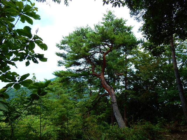 山梨県の倉岳山登頂記・その4をお届けいたします・・・高畑山から稜線伝いに歩くこと約30分程で、本日二番目のピークである天神山の山頂へ到達いたしました(^-^ゞ 標高876mの狭い山頂には形の良いアカマツの樹も生えておりました。・°・。吹き抜ける涼しい風を受けながら、持参したお稲荷さんで遅めのお昼ご飯にいたしました(o^-^o)