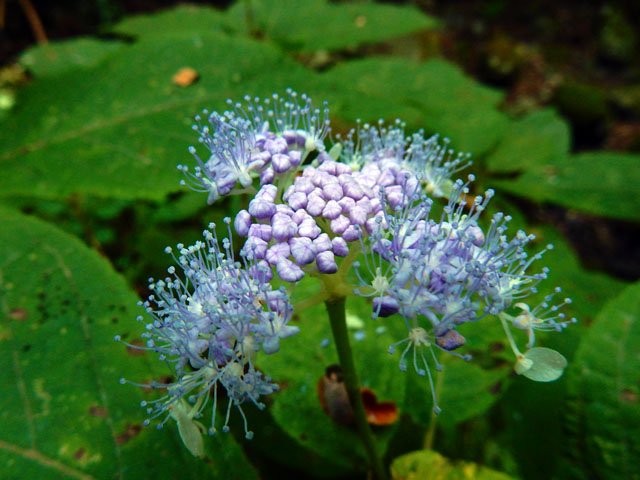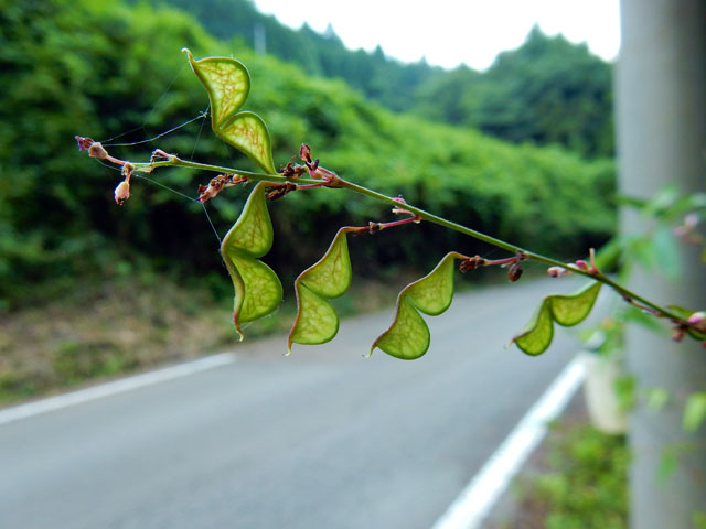 山梨県の倉岳山登頂記・その6をお届けいたします・・・月尾根沢沿いの谷間の道を下り続けて、小さな橋を渡りました。橋の両脇には美しいタマアジサイが少し薄暗い中で、花火のように咲いておりました。・°・。山道を下り切ると車道へ出ました。緩やかな下り坂を梁川駅に向かって歩きました。道端にはキンミズヒキの花やヌスビトハギの実が成っておりました。・°・。*