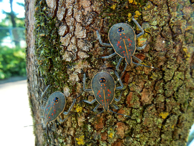 最近、近所で見かけた虫達をご紹介させていただきます。・°・。クサギカメムシさんは赤味がかった釉薬を掛けたような渋い体色がステキです。・°・。夏の昼間はアオドウガネさんの亡き骸をよく見かけます。。外灯のそばに転がっていることが多いのは、もしかしたら人工光に惑わされているうちに力尽きてしまったからでしょうか・・・? 炎天下のアスファルトの上ではクマバチさんの亡き骸も時折目にします。黒い羽の虹色光沢が美しいなといつも見惚れてしまいます。・°・。アトリエ☆イボヤギ 木村大介