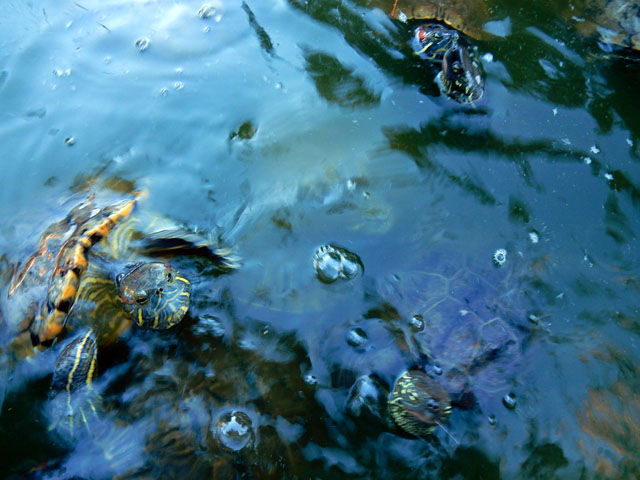 〈本日のタイトル解説:『 亀池で 我も我もと 泳ぎ来る。・°・。(・・;) 』〉