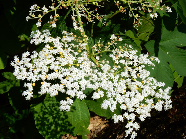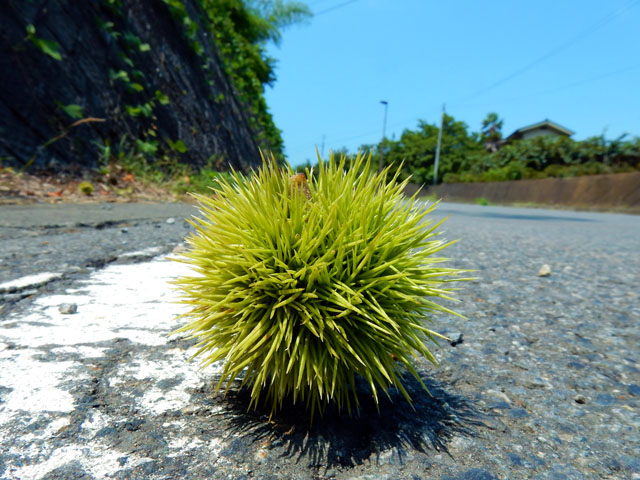 平地ではまだ観られない葛の花が既にたくさん咲いておりました。・°・。緩やかな登りの舗装路にはまだ青いイガ栗が転がっておりました。・°・。今日の現地の最高気温は31℃と示されておりましたが、山道に差し掛かる前に既に汗だくになっておりました(・・;) 名前は判りませんでしたが、カミキリムシの仲間が好きそうな白い複集散花序の花が咲いておりましたが、残念ながら虫の姿は見られませんでした。・°・。*
