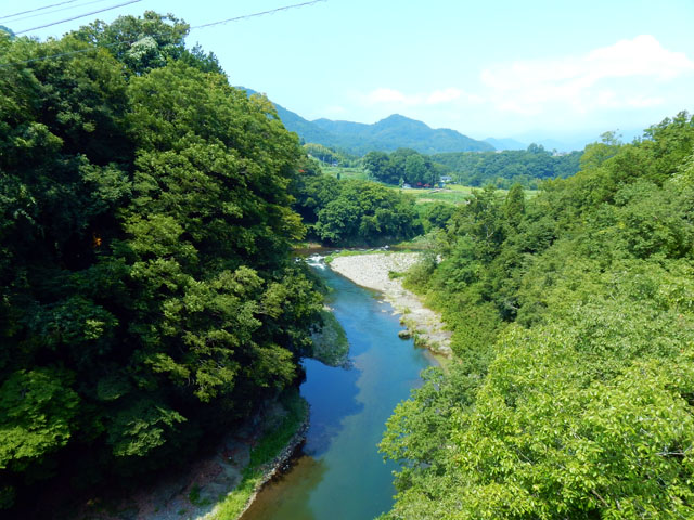 青々とした水田越しに目指す倉岳山が見えました。・°・。麓を流れる桂川に架かる虹吹橋を渡りながら、清流で鮎の友釣り?をしている人々の姿が見えました。・°・。>°)))彡