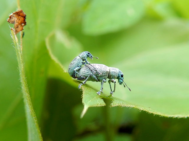 先日7/31(日)の自然観察記・その3をお届けいたします・・・広い公園の一角にある「ばったランド」と呼ばれる虫達のための草地エリアでは、ススキやクズの葉が生い茂っておりました。・°・。マメコガネさんはこの地の顔馴染みさんでよく見かけますが、後ろ脚を高く掲げるポーズが、なんだかおちゃめに見えてしまいます(^^)  そして同じくらいたくさんいらっしゃるのがコフキゾウムシさんたちです。交尾中を見かける率がとても高い気が致しますので、いっそリア充ゾウムシと改名しては・・・などと思ってしまいます( ̄∇ ̄*)  そんなコフキゾウムシさんの姿を撮影しておりましたところ。。手前のカップルの背後からライバル?とおぼしき輩が現れました・・・