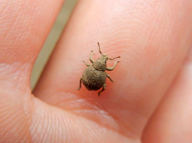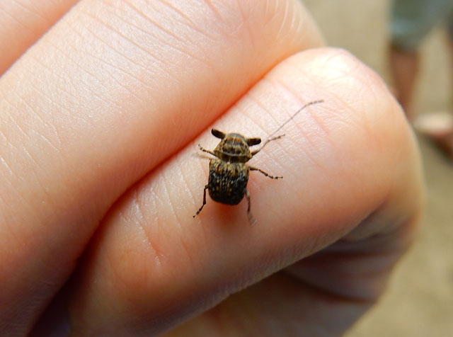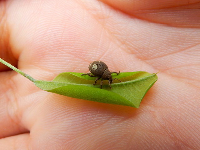 萩の葉の上でエゴヒゲナガゾウムシさんのオスが居るのを見つけました! 手の平にのせてそのユニークな牛面をじっくりと観察したかったのですが。。すぐに飛び立たれてしまいました。・°・。(*´-`)