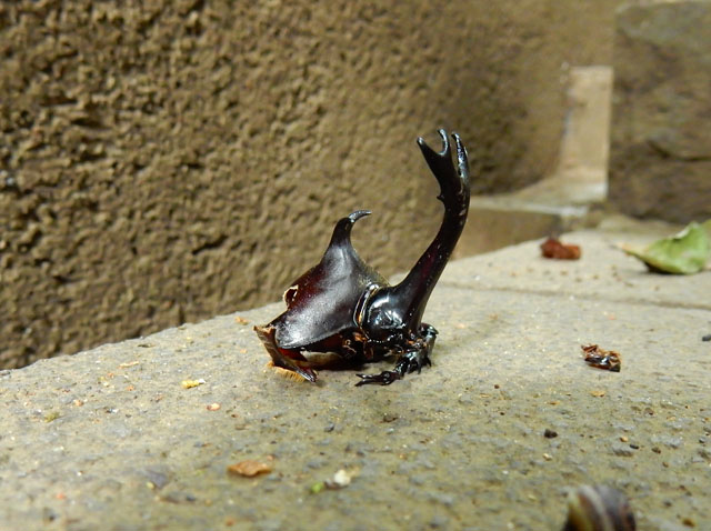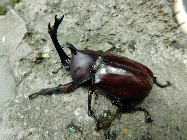 先日7/31(日)の自然観察記・その6をお届けいたします・・・萩の樹ならきっとキチョウの幼虫か蛹が見つかるかな?と探してみると・・・透明感の高い琥珀色の蛹が見つかりました。しかしなんとなく中にいるのは健康的なキチョウさんでは無い気がいたしました。。もしかしたらご病気か、あるいは寄生蜂にやられてしまっているのかな?と案じました。。(+_+)  崖線沿いの湧水地に続く下り階段を降りていると、カブトムシの雄の頭部が落ちておりました。。それは「落ちていた」と言うよりは、まるで脱いだ兜を置いてあるかのような感じでした。。周囲にはカラスの姿が多かったので、恐らく腹部を喰われてしまったのかな?と思ひました・・・(*_*)  そして階段を降り切って湧き水の豊富に出ている崖下にたどり着くと。。今度は生きているカブトムシの雄が水面に浮かんでもがいておりました(*゜0゜)これはイカンと思い、滑りやすい石垣を慎重に降りて、腕を目一杯伸ばしてレスキューいたしました。・°・。(`_´ )ゞ