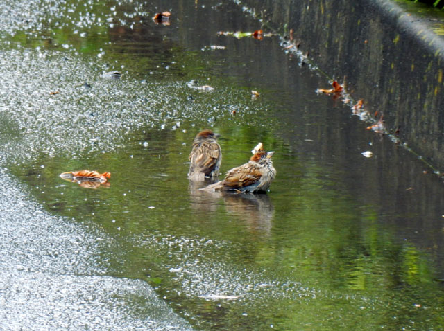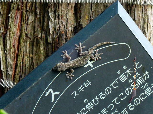 貨物列車もよく通る鉄道の高架下を抜けると、雨上がりの真夏の青空が拡がって参りました。・°・。白くてまぶしい積乱雲も、もくもくと成長しておりました。・°・。にわかに出来た路面の水たまりでは、まだ幼いスズメたちがうれしそうに水浴びする姿も観られました(⌒‐⌒)♪  車道沿いの杉の樹のラベルの上に、炎天下のまだ明るい時間だというのにヤモリさんが貼り付いておりました。・°・。*