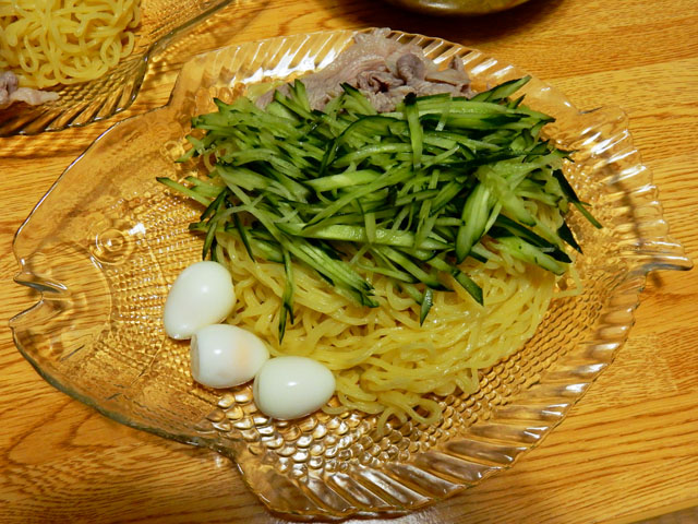 たくさんの生き物に出会えた休日でしたが、だいぶ歩き周ったのでお腹もずい分と減りました。・°・。今宵は冷やし中華に冷しゃぶとウズラのゆで玉子、たっぷりの千切りキュウリをトッピングして、お腹いっぱい美味しくいただきました。・°・。(o^-^o)  アトリエ☆イボヤギ 木村大介