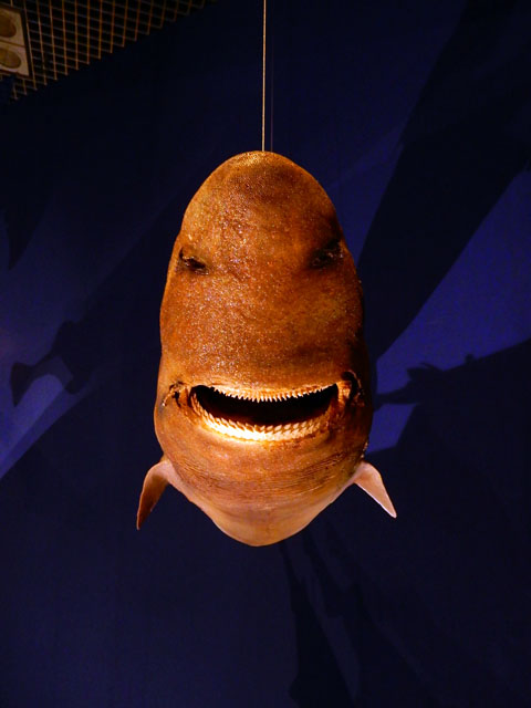 また、魚竜の中では最大級とされている、ショニサウルスの頭部骨格の模型もございましたが、こちらは恐怖感よりも・・・なんとなく大きなアヒルさん?を連想させられました。。(^^;)  現存するサメ類のコーナー「サメラボ(サメ・ラボラトリー)」では8目25種のサメの剥製が紹介されていて、中でもアイザメさんの真正面から見たお顔が、少し愛嬌のあるモンスターのように見えてしまいました。。(・・;) ・・・その2へつづく。・°・。アトリエ☆イボヤギ 木村大介
