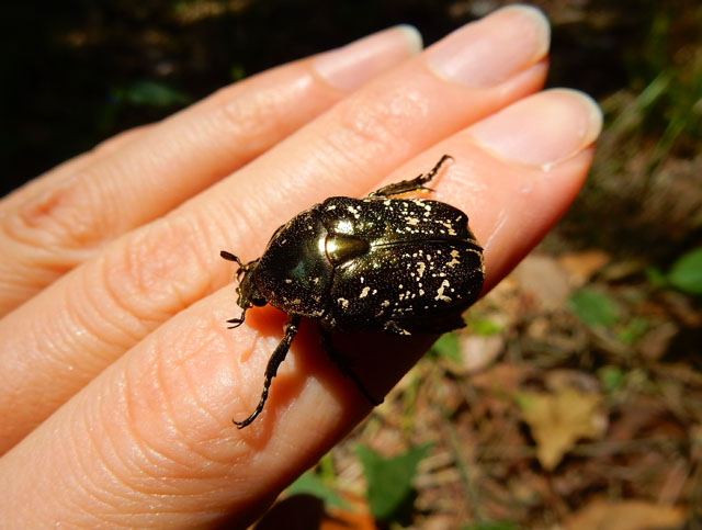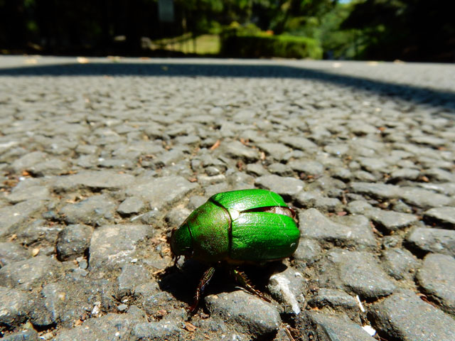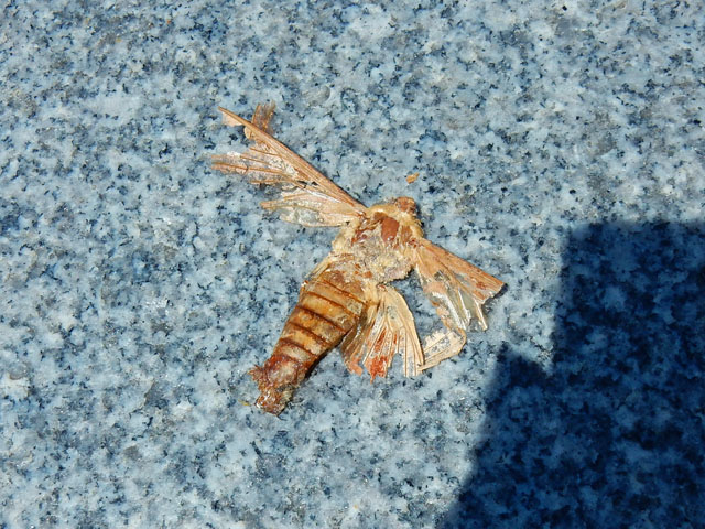 先週の土曜日は都心まで出掛けたのですが、この日も朝から猛烈な暑さとなりました。・°・。最初に上野ZOOへ納品に向かいました。上野公園のイチョウの木の下ではアオドウガネさんの亡き骸がアスファルトの上で輝きを放っておられました。・°・。その先の木陰へと続く傾斜路をハナムグリさんが歩いておりましたので「おや、そんなところを歩いていたらタクシーに轢かれてしまうよ・・・」と声をかけて拾い上げました。木漏れ日に照らされた鞘羽がギラギラと輝いて、まばゆい光が目に刺さりました(☆_☆)  無事に納品を済ませて、不忍池のハスの群落を眺めながら人通りの多い交差点を渡ると・・・大理石の歩道の上にぺしゃんこに干からびた、スズメガさんの仲間と思われる亡き骸を見掛けました。。どの種類か詳細は判りませんでしたが、夜の上野の街を飛行している間に人工光に惑わされて、クルマか人に轢かれてしまったのでしょうか・・・('-'*)?。・°・。☆