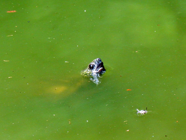 先日の自然観察散策記のつづき・その7です・・・雑木林に挟まれた小さな公園の池にはわたくしの確認出来ただけで、3匹のカメたちが棲んでいるようです。左端の写真はクサガメさん、真ん中と右端の写真(同じ個体)は外国産のヌマガメの仲間かな?と思われるのですが、詳しいことは不明です・・・。この日は撮れませんでしたが、他にも身体の大きなミシシッピアカミミガメさんも以前から確認しております。どの個体もとても警戒心が強いのですが、いったん水に潜ってもしばらくするとまた水面に顔だけ出して、こちらの様子を窺っている視線を感じます・・(^^)
