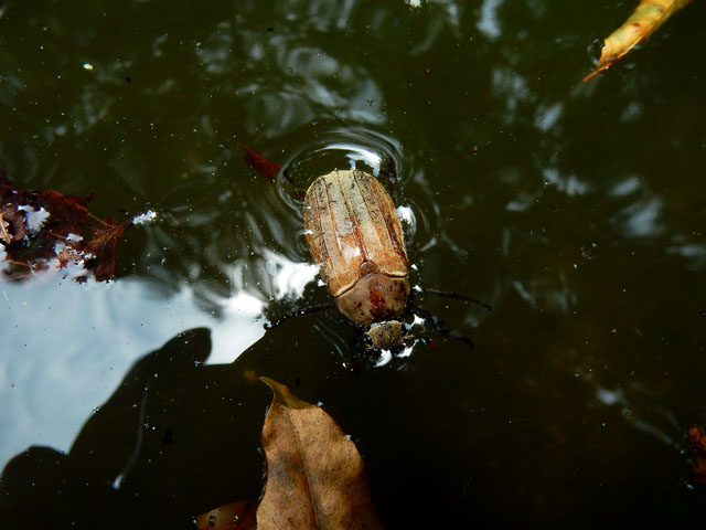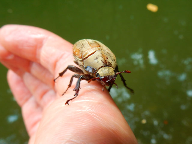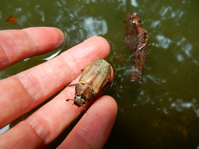 池の周りを歩いているとメスのコフキコガネさんが水面でもがいておりました・・・(*゜0゜)! 指を差し出してレスキューすると、必死につかまって指をよじ登って参りました・・・