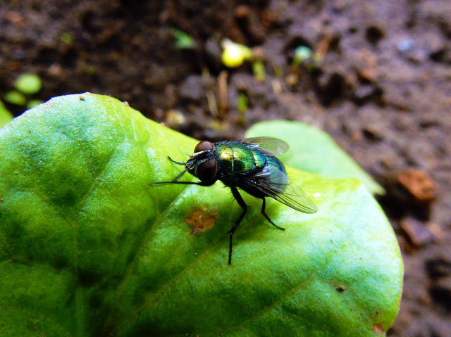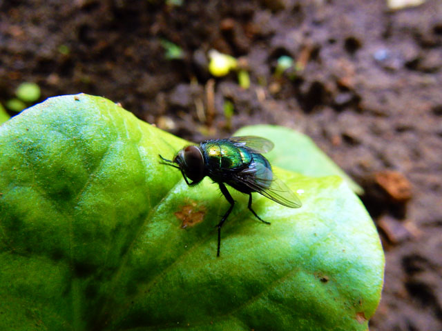 地面に近い草の葉の上で、キンバエさんが観察しているこちらを気にもとめずに、脚や顔周りのメンテナンスを始めました・・・金ピカボディを保っていられるのも、そんな地道な綺麗好き行動の賜物でしょうか。・°・。(☆_☆)