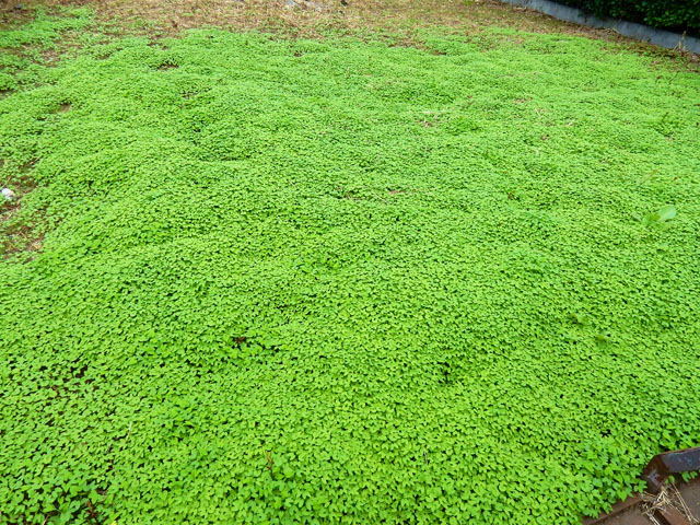 花壇の脇のコンクリートの歩道上に、小さな黒い甲虫が歩いておりましたので、かがんでよく観ると・・・エンマコガネの仲間でした。後で調べてカドマルエンマコガネさんだと知りました。もっとよく観察したかったのですが、不意に羽を開いてフライアウェイされてしまいました。・°・。草の葉の上に外形がホタルガに似た感じの青黒い蛾を見かけました。調べてみるとやはりホタルガと同じマダラガ科の仲間で、触覚が細いのでメスのようでした。ところでこの蛾の幼虫ですが・・・竹や笹の葉が食草で、長い毒毛に触れると激しく痛み、その後も強い痒みが7~10日間程続くそうです。。出会ったのが成虫でよかったです・・・(^_^;) 団地を抜けて住宅街を歩いていると、家々の間の更地になった空き地に、緑のクッションのようなこんもりとした植物が生えておりました。遠目にはてっきりオキザリスの群落かな?と思いながら近くに行くと。。なんとそれは、アサガオの双葉がいっせいに開いたばかりの光景でした。・°・。どうしてこんなに密集して芽生えたのか謎でしたが、誰かが蒔いたのか、あるいは前年の種がこぼれたのか?ちょっと不思議な感じがいたしました。・°・。アトリエ☆イボヤギ 木村大介