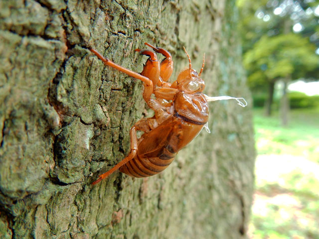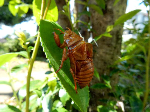 先日7/31(日)の自然観察記・その2をお届けいたします・・・この日はアブラゼミの抜け殻をたくさん見かけました。周りではミンミンゼミの鳴き声もよく聞こえているのですが、今のところなぜか抜け殻の方はなかなか見かけません。・°・。無論、アブラゼミの鳴き声も負けておりません。・°・。(^^;)