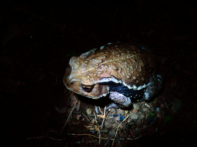 先週末の夜の雑木林観察記のつづき・その2です・・・初めて観たクルマスズメさんの空中吸汁に感激した樹のそばで、今度はムクゲコノハさんを観ることが出来ました(°▽°)! 前翅の落ち着いた雰囲気の色合いもステキですが、後翅の青い紋もとても美しくて感動いたしました。・°・。この間の夜間観察の際にも遭遇した、とても立派な体格のアズマヒキガエルさんとまた同じ場所で再会いたしました。。(*゜0゜) 獲物の豊富そうなこの森で、夜な夜なステキなディナーを召し上がっていることをお察しいたしました・・・(o^-^o)