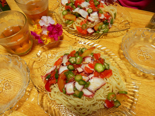 帰り際にはコクワガタさんの雄にも出会うことが出来ました。左端にはコメツキムシさんかな?と思われる甲虫の姿も写っておりました。・°・。帰宅後は、この間食べてとても美味しかったタコの冷製パスタを、また友人にリクエストいたしました。今回はオクラがたくさん手に入ったのでキュウリの代わりに用いましたが、少しネバネバ感も楽しみながらまた美味しくいただきました♪  久しぶりに西荻窪の こけし屋のケーキをいただきました。ココナッツや柑橘類を用いた夏向きの新作もあって、大変おいしゅうございましたヾ(*´▽`*)/ アトリエ☆イボヤギ 木村大介