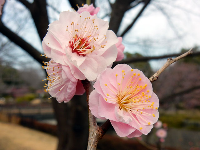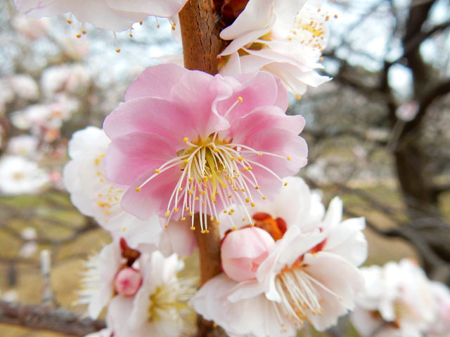 昨夜遅く月齢約10のお月様が東の空から昇って参りました。・°・。そして今宵は西の空にも白く輝く姿を望むことが出来ました(^-^)  それでは先日の3月5日(日)に訪れた、立川市にある国営・昭和記念公園散策記・その2をお届けさせていただきます・・・梅園では薄桃色のきれいな「けんきょう(見驚)」という品種の梅もよい香りで印象的でした。・°・。*