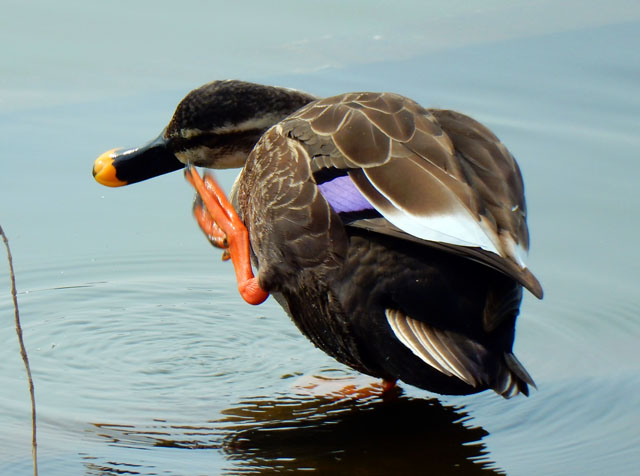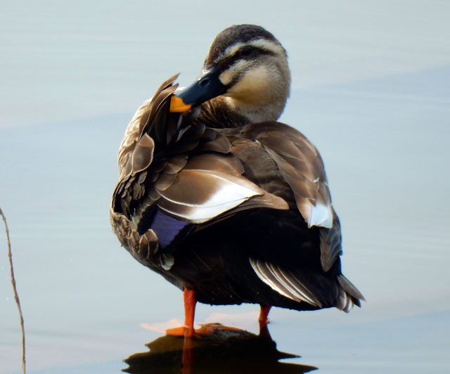 水鳥の池ではカルガモたちが、岸辺の浅瀬で羽繕いをしておりました。翼鏡の紫色がとても美しく見えました。しばらく観察しておりますと・・・くちばしのそばに羽を立てた仕草がまるで、口元に手を当てて「おほほほほっ・・・」と上品に笑う姿に見えてしまいました(^^)。・°・。その4へつづく・・・2017/03/10(金) アトリエ☆イボヤギ 木村大介
