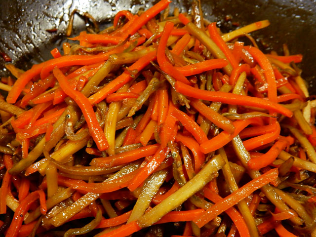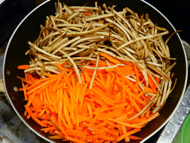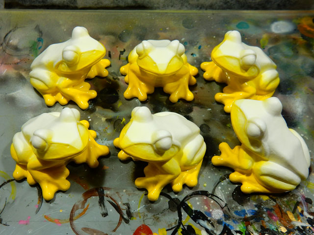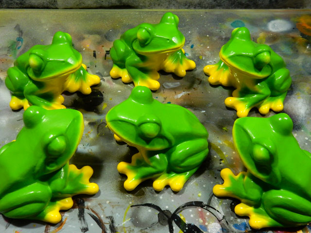 古アパートの二階にあるアトリエでは只今、立体かえるシリーズのヤエヤマアオガエルの塗装を手掛けております。写真は下腹部と手足の黄色系の塗料を吹き付け終えたところです。・°・。最近やたらと人参を値引き処分でゲットできる機会が多くて、かなりたまってしまったので、久しぶりに きんぴらごぼうをこさえました。簡単に千切りに出来るおろし器を用いて、ゴボウも人参もたっぷりと使いました。冷凍してあった ちりめんじゃこもいっしょに炒めて、味わい深い一品となりました(o^-^o)
