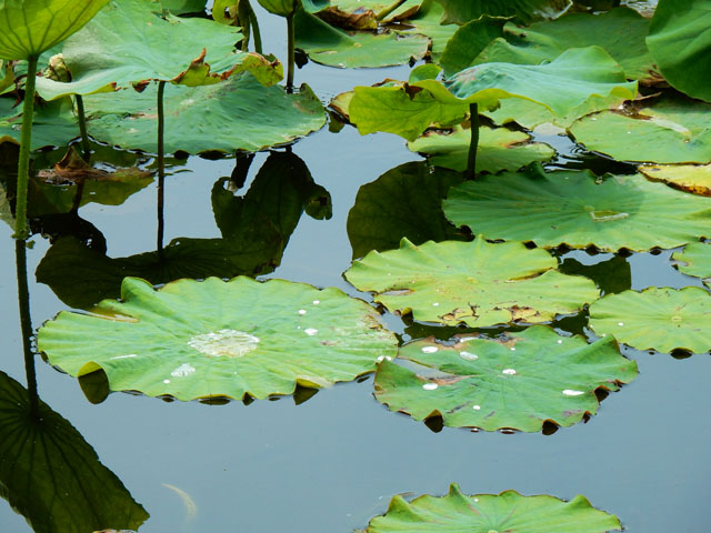 〈本日のタイトル解説:『 蓮の葉が 地面を覆う 緑色。・°・。◎ 』〉