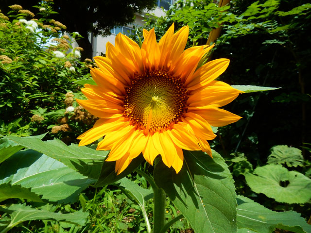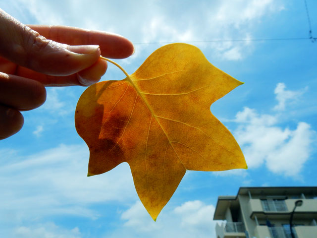 先日の日曜日に訪れた、湿地帯と池のある公園訪問記のつづき・その3です・・・カルガモの親子を狙っているように見えたアオダイショウのその後の動向ですが、水面から這い上がった枯れ枝の上にしばらくおりましたが、そこからはカルガモたちの居る木製のフロートまで届かないので、ひとまず安心して公園を後にしました。・°・。今日は梅雨の晴れ間で思いの外陽射しも強くて、色付いたアジサイたちも心なしか少し戸惑っているように見えました。・°・。片や住宅街の花壇では、丈の低いヒマワリがもう咲いておりました。・°・。街路樹のユリノキの葉が黄変して何枚か歩道に落ちておりました。・°・。一枚拾い上げて青空にかざすと、まるで洗いざらしのTシャツのように見えました。・°・。ヽ(´▽`)/