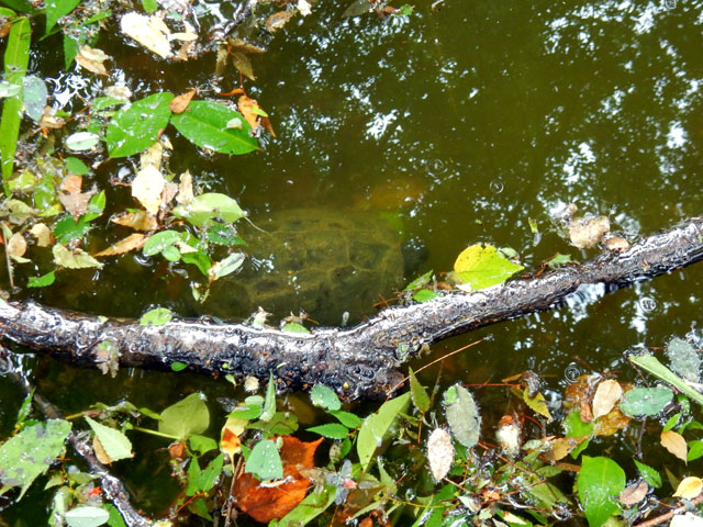 水の中に他の生き物を探してみると・・・イトトンボと思われる中型のヤゴの姿がいくつも見られましたので、小さいながらもそれだけの生き物たちを支えられる生態系が保たれているのかな?と予想されました。・°・。池の縁の枯れ枝や落ち葉の吹き寄せられた場所には、甲羅の長さが20センチ位のクサガメさんの姿を見掛けました。先日はひと回り程小さなもう一匹のクサガメも見たので、よく甲羅干しをしているミシシッピアカミミガメさんと合わせると、この池には少なくとも3匹の亀たちが棲んでいそうです。・°・。池を後にして反対側の雑木林に入りました。雨上がりで落ち葉と土の匂いが心地よく感じられました。・°・。*