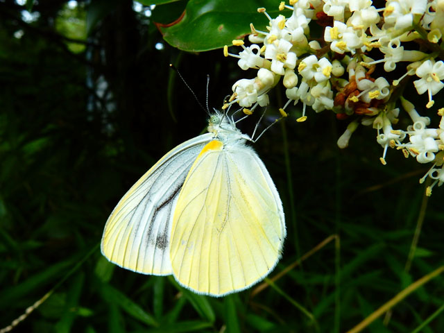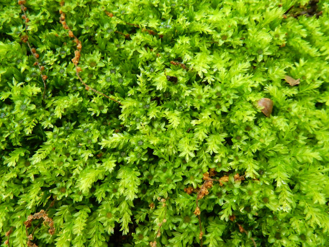 先日の雨上がりの散策記の続き・その3です・・・雑木林の中ではムラサキシキブの花や蕾がそこかしこで観られましたが、その葉の上にトゲトゲの幼虫を見つけました。初めはトホシテントウなどのテントウムシの仲間の幼虫かな?と思ったのですが、後で調べてみたところイチモンジカメノコハムシさんのお子様だと判明いたしました。自分の抜け殻を背中に載せてカモフラージュ効果を狙っているようです。食樹もムラサキシキブなどを食べるとのことでした。・°・。そのうちに透明な縁を持つ、美しい成虫の姿も観られうかな?と期待しております(^-'*) 小高い雑木林を抜けて麓に降りて来ると、地面が苔むした梅林に出るのですが、今日は雨上がりのため一面が苔の瑞々しい緑の絨毯と化しておりました。・°・。ネズミモチの花の近くでまたコマルハナバチさんに出会えるかな?と探してみましたが、雨が上がって間もないせいか?その姿を観ることは叶いませんでした。。しかし、スジグロシロチョウさんが蜜の豊富そうな花で吸蜜する姿はよく見かけました。・°・。*