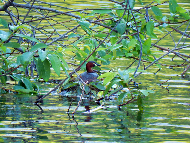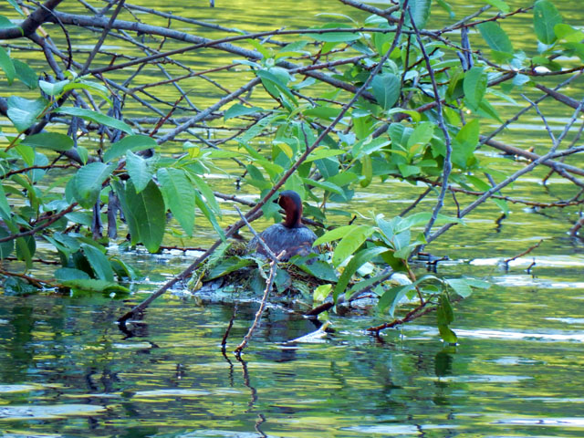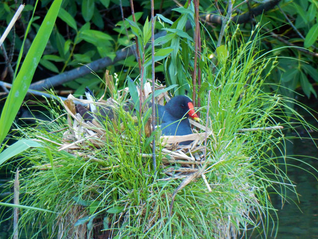 池の岸辺の杭の上に、バンさんが巣ごもりしておりました。クチバシが鮮やかで赤いのため、草陰に隠れていても結構目立っておりました(^^) その近くにはカイツブリさんの姿もあって、池の方へ張り出した樹の枝の先に固定された巣に載っておりました。陸から離れていてカラスも襲いにくそうな場所でしたが、親鳥はキョロキョロと辺りを見回して、警戒を怠りませんでした。。これからヒナたちの姿も観られると思うと、今からとても楽しみです(⌒‐⌒)