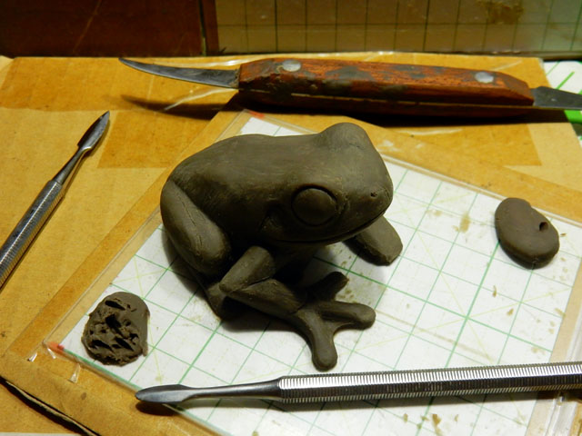 前回リリースからだいぶ間が空いてしまいましたが、しばらく振りに立体カエルの新作を手がけております・・・写真はまだラフの段階のクツワアメガエルの油土原型です。手足の指のほっそりした雰囲気を、如何に強度を保ちながら再現するかでいつも苦心を重ねております。。(`_´ )ゞ  うちのアパートには年に数回、庭師の方が草木の刈り取りに来られるのですが(立派な庭園があるというわけではなく、地味が豊かなのか?繁殖力が旺盛ですぐにジャングル化してしまうので・・・)、先日大家さんと庭師の方が、段取りをしている会話が聞こえて参りました。裏庭にある大きな夏みかんの樹には、まだまだたくさんの実が付いておりましたので、枝を剪定される前に前倒しで収穫を行っておきました。真ん中の写真は、小庭の物干し場に野積みにしたものですが、これはまだ一部でこの2倍ほどの量がございました・・・(°▽°)! 数もすごいのですが、ひと粒あたりの大きさもジャンボサイズが多くて、写真のような、割りと手が大きいと言われるわたくしの掌も見えないくらい大きなモノもザラにございます(・・;)  夏みかんの樹の下にはフキも群生しておりますので、そちらの方も食べ切れる分だけなんとか収穫しておきました。・°・。アトリエ☆イボヤギ 木村大介