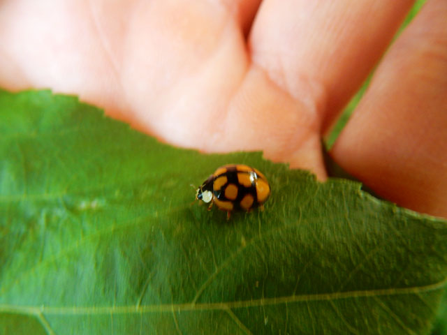 昨日訪れた国分寺市にあるエックス山の訪問記・その2です・・・林の中にはムラサキシキブの薄紫色の小花がそこかしこで咲いておりました。・°・。小枝の先には腹部の丸っこい形をした、小さくてかわいらしいゾウムシさんがおりました。・°・。おそらくナミテントウさんかな?と思われますが、珍しい斑紋柄だなと思って、薄暗い林内で追いかけながら撮り、なんとか写った一枚は・・・なぜか眼の部分だけ辛うじてピンが合っておりました。。(^^)