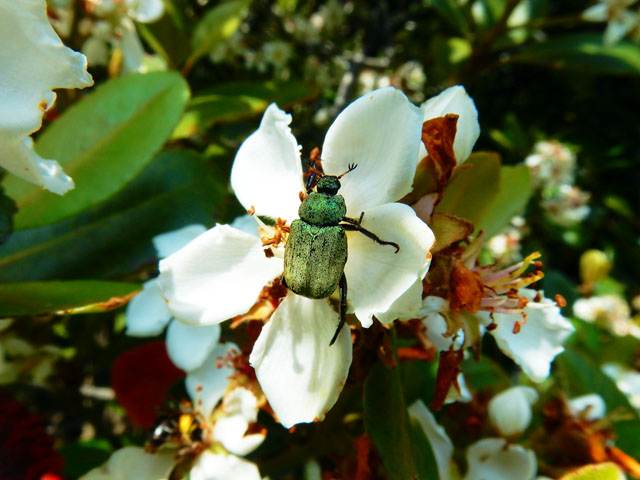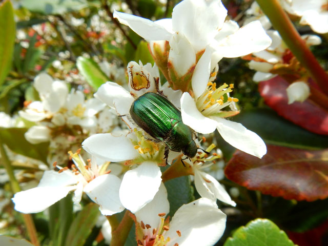 甲虫の仲間ではヒラタアオコガネさんやコアオハナムグリ、アシナガコガネさんらも多く見かけました。コアオハナムグリさんは顔中花粉まみれで、もう夢中といった様子でした(^^)