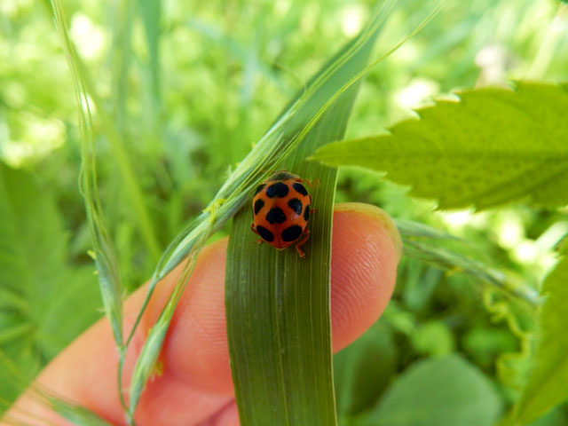 ナミテントウの姿もよく見かけましたが、珍しくておしゃれな赤黒チェック模様の子もおりました。何度も飛び立とうと鞘羽を拡げかけるのですが、なかなか上手く飛び上がれない不器用なさまに。。シンパシーを感じてしまいました。・°・。その7へつづく・・・アトリエ☆イボヤギ 木村大介