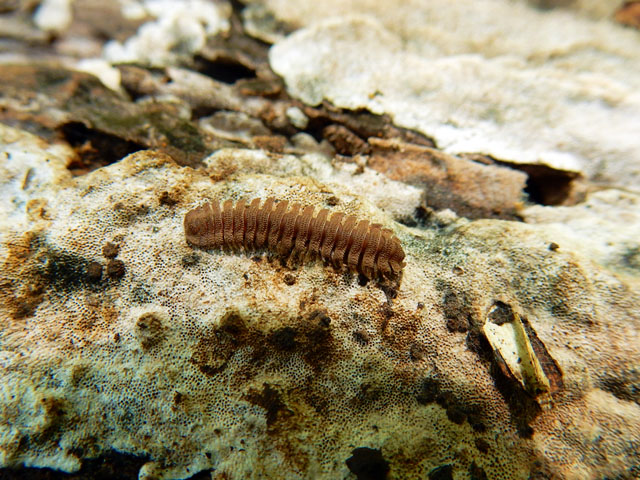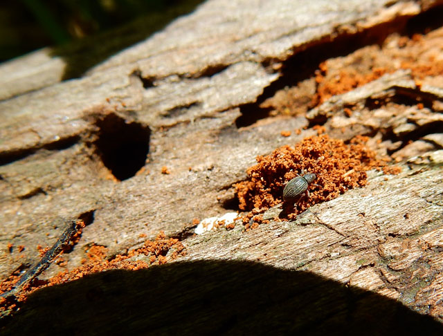 中腹で見かけたシロアリの巣になってる朽木の上には、キシャヤスデさんの姿があったり、穴の中からは小さなゾウムシさんも這い出て来ました。・°・。*