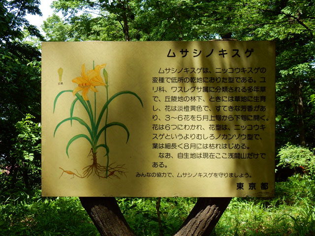 昨日訪れた浅間山(せんげんやま)登頂記のつづき・その2です・・・木漏れ日とそよ風の気持よい緩やかな山道を登ると、この山を一番有名にしている希少な植物「ムサシノキスゲ」の解説板がございました。・°・。ちょうど今の時期は、そのムサシノキスゲの開花に合わせた「キスゲフェスティバル」が開催されていて、公園を維持管理されているスタッフの方々が、特設のレクチャーセンターを開いておりました。公園で観られる動植物の紹介パネルを観覧して、山の地図や資料をいただきました。・°・。ちょうどギンランとササバギンランが近くに咲いていることを、案内ガイドの方が教えて下さり、その違いも説明していただきました。上段真ん中の写真がギンランで、右端がササバギンランです。草丈も違いますが、ササバギンランは和名の通り笹の葉に似た、細長い葉をしているのも特徴だそうです。・°・。*