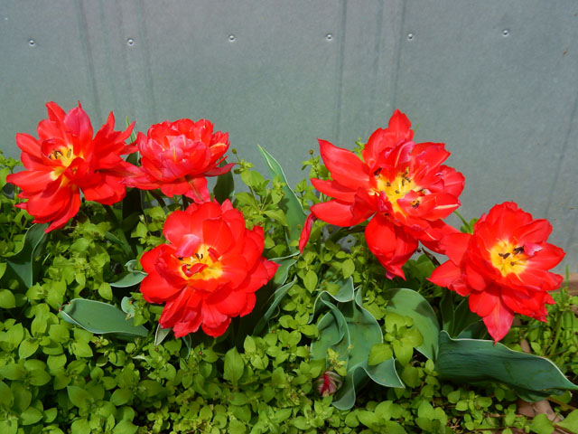 縁台に置いたプランター植えのチューリップですが、ひときわ豪華な花を咲かせるフラッシュポイントと言う品種は、暖かい陽差しをいっぱいに受けて今朝は満開となりました。・°・。完全に開いた姿はまるでバラの花のようです。・°・。ヽ(´▽`)/ いっしょに植わっているのはハコベですが、米の研ぎ汁を与えて育てているうちに、すっかり繁茂してしまいました。。緑がキレイなのであえてそのまま共存させております(⌒‐⌒)♪  本日はたっぷりの陽射しと適度な風のおかげで、湿度も低下してくれたので、レリーフ作品の素材樹脂の注型作業を行いました。湿度が高いと気泡が発生しやすいのですが、今日は低湿度のおかげでとても綺麗に型抜きを行うことが出来ました(^-^ゞ 先日人通りの多い歩道の真ん中に、小さなシジミチョウが留まっておりました。。小さすぎて先を急ぐ人々にはきっと目にも入らなさそうで危険極まりませんでしたので、そっと羽を指の間に挟んで拾い上げました。ヤマトシジミかな?と思ったので、しばらく歩いて団地の花壇の隅のカタバミの葉の上にリリースいたしましたが・・・後で調べてみたら。。どうやらルリシジミさんのようでした・・・(^_^;)。・°・。アトリエ☆イボヤギ 木村大介