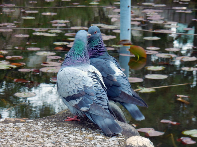 しばらく歩いて善福寺公園に着くと、下の池側の公園入り口では早くも賑やかな人の声が聞こえてまいりました。水面にせり出すように伸びた染井吉野の樹々が、みなもにも桜色を映し込んでおりました。・°・。池の畔で2羽のドバトが周囲の人目を気にも留めずに、求愛のディスプレイを始めました。。互いの姿を鏡に写したかのごとく、同じ動作を繰り返した後、無事に儀式を執り行うことが出来て両者とも満足気なご様子でした。・°・。(*'-'*)('-'*) (その2へつづく)・・・アトリエ☆イボヤギ 木村大介